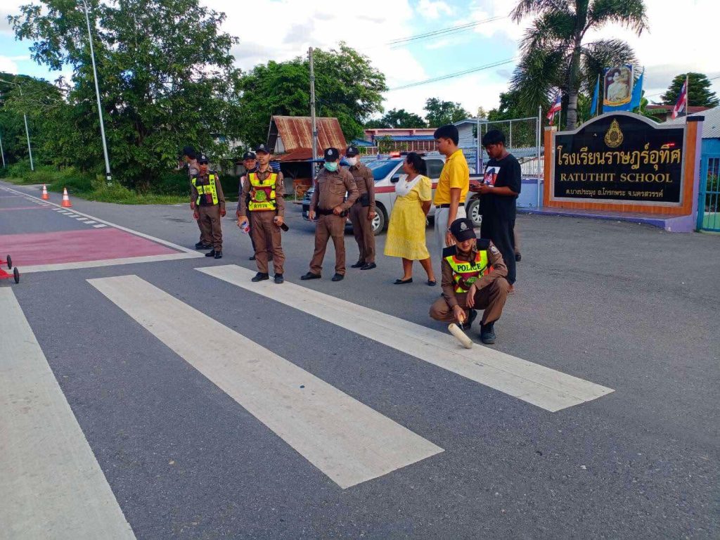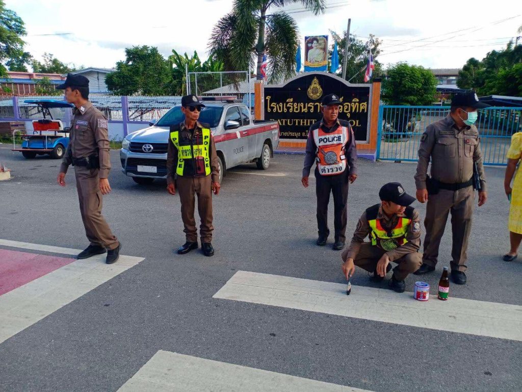 การปฏิบัติหน้าที่ งานจราจร มี.ค.68 31 มีนาคม 2568 โดย admin / การปฏิบัติหน้าที่ข้าราชการตำรวจสถานีตำรวจภูธรบางประมุง,การปฏิบัติหน้าที่ข้าราชการตำรวจสถานีตำรวจภูธรบางประมุง,งานจราจร วันที่ 12 มี.ค.68 เวลา 10.00 น. ภายใต้การอำนวยการของ ว่าที่ พ.ต.ต.ชนะชัย เเซ่ตั้ง มอบหมายสั่งการให้ ร.ต.อ.ณัฐจิรพัส ปรัชญานวัตศิริ หัวหน้างานจราจร สภ.บางประมุง พร้อมเจ้าหน้าที่งานจราจร สภ.บางประมุง ประสานโรงเรียนราษฎร์อุทิศ ดำเนินการปรับปรุงทางม้าลายบริเวณหน้าโรงเรียน บนถนนสาย บางมะฝ่อ-บางประมุง พร้อมร่วมดำเนินการทาสีทางม้าลายใหม่ให้ผู้ขับขี่และคนเดินเท้ามองเห็นทางข้ามได้ชัดเจน เพื่อความปลอดภัยของนักเรียนและคนเดินเท้าที่ใช้ทางข้ามดังกล่าว ได้ดำเนินการปรับปรุงเรียบร้อยแล้ว วันที่ 18 มี.ค.68 เวลา 10.00 น. ภายใต้การอำนวยการของ ว่าที่ พ.ต.ต.ชนะชัย เเซ่ตั้ง สว.สภ.บางประมุง โดย ร.ต.อ.ณัฐจิรพัส ปรัชญานวัตศิริ รอง สว.(ป.)ฯ พร้อมกำลัง ดำเนินการจัดการฝึกอบรมโครงการอาสาจราจรให้กับอาสาสมัครภาคประชาชน และอาสาสมัครป้องกันภัยฝ่ายพลเรือน ในพื้นที่รับผิดชอบ ณ อาคารป้องกันและบรรเทาสาธารณภัยเทศบาลตำบลบางประมุง วันที่ 25 มี.ค.68 เวลา 11:00 น. ภายใต้การอำนวยการของ ว่าที่ พ.ต.ต.ชนะชัย เเซ่ตั้ง สว.สภ.บางประมุง โดย ร.ต.อ.ณัฐจิรพัส ปรัชญานวัตศิริ ร้อยเวร 20 พร้อมด้วยสายตรวจรถยนต์ ได้ออกรณรงค์ ลดอุบัติเหตุทางท้องถนน สวมหมวกนิรภัย และดื่มไม่ขับ เพื่อเสริมสร้างวินัยจราจร ในช่วงเทศกาลสงกรานต์ ในพื้นที่หมู่ที่1 ต.นากลาง อ.โกรกพระ จ.นครสวรรค์ FacebookFacebookXTwitterLINELine